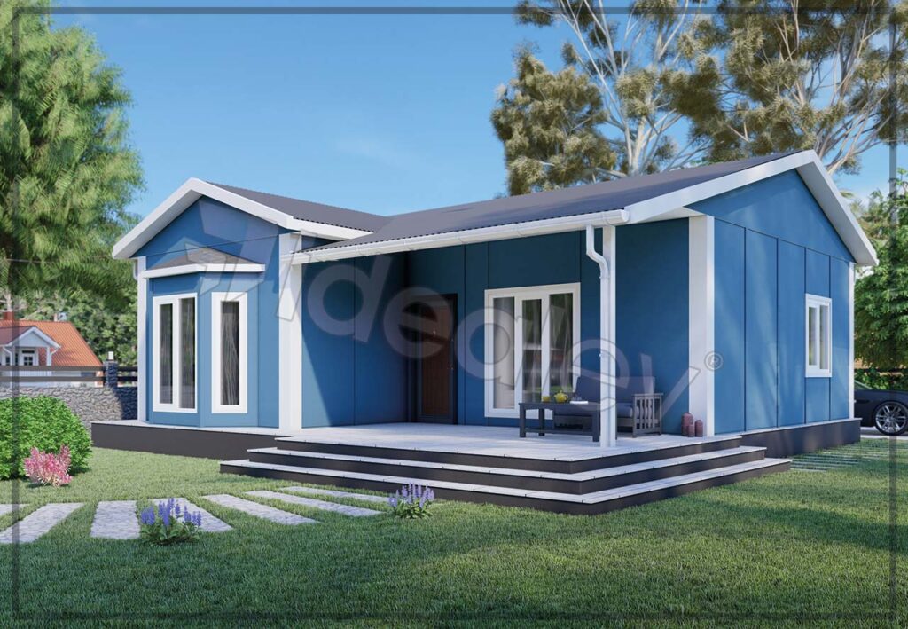 Our 81 m2 3+1 bedroom Large model can be built quickly thanks to the prefabricated construction technology. It is the most efficient in terms of space utilisation compared to other buildings in the same category. It has two bedrooms of 12 m2 and one of 13,6 m2 and a 26 m2 living room with American style kitchen and bathroom. It is ideal for first-time buyers, but can also provide comfortable accommodation for smaller families. It can also be built with an accessibility system if required.
