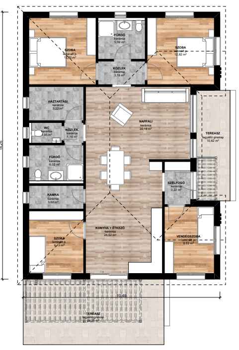• 4. VENDÉGSZOBA laminált p.: 9,52 m2